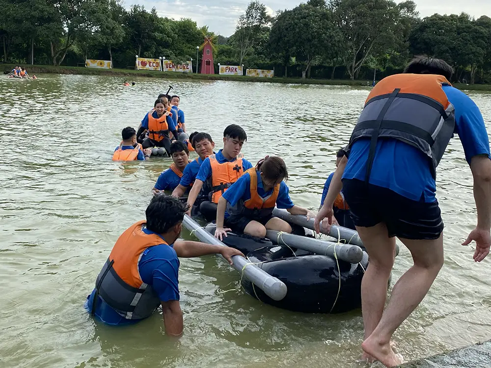 We built our own raft and tested it on the water — teamwork really made it float!